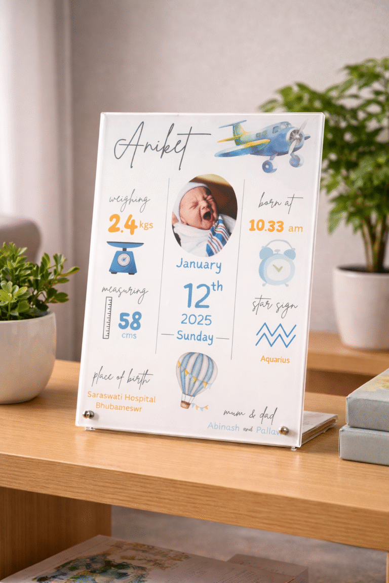 Baby Birth Details on Acrylic Photo Frame 8X12 inch