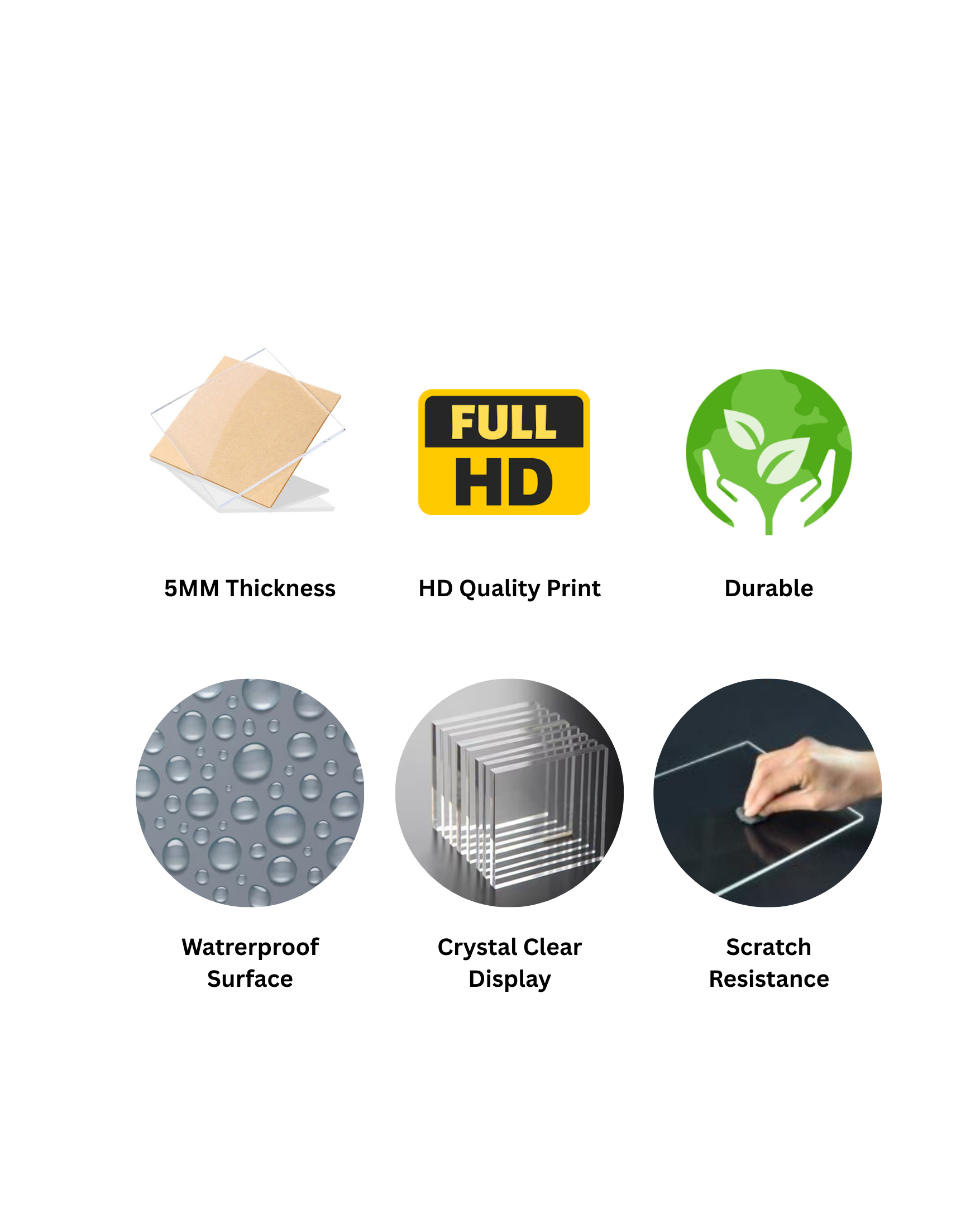 Give your memories a premium, glass-like look with our 6mm thick acrylic photo frame. Designed for a modern and elegant display, this frame offers exceptional clarity and a glossy finish that enhances every detail of your photo.